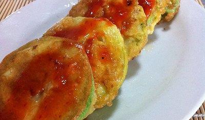 除了传统的煎烤吃法,茭瓜饼还有很多创意吃法。比如,可以将茭瓜饼切成小块,搭配生菜、黄瓜等蔬菜,制作成美味的沙拉。或者将茭瓜饼切成条状,裹上面糊,油炸成金黄酥脆的炸饼,再搭配番茄酱、辣椒酱等调料,口感更加丰富。